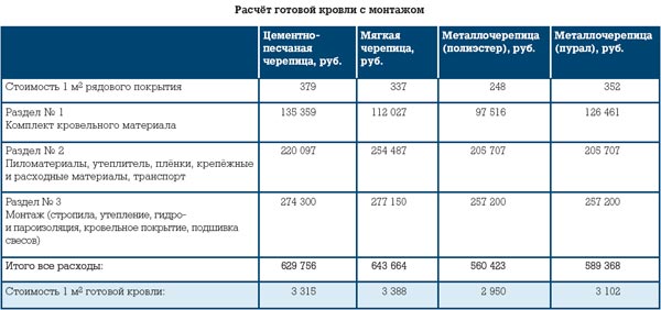 СКОЛЬКО СТОИТ КРЫША? СРАВНИТЕЛЬНЫЙ РАСЧЕТ СТОИМОСТИ ГОТОВОЙ КРОВЛИ
